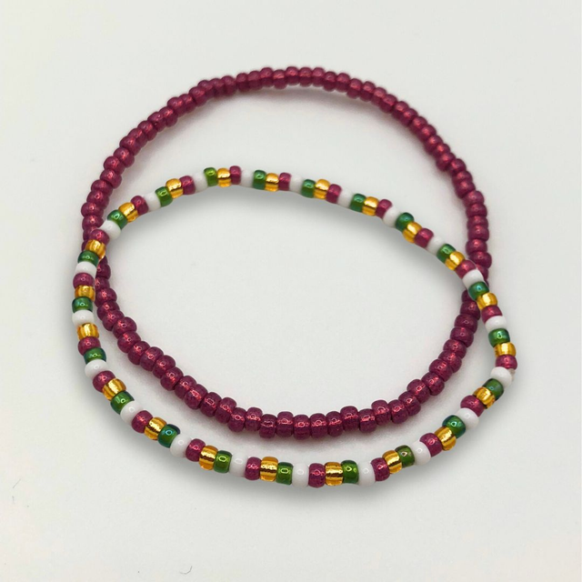 Deze set bestaat uit twee kralenarmbandjes, zoals getoond op de foto’s. De armbandjes hebben een lengte van ongeveer 18cm.