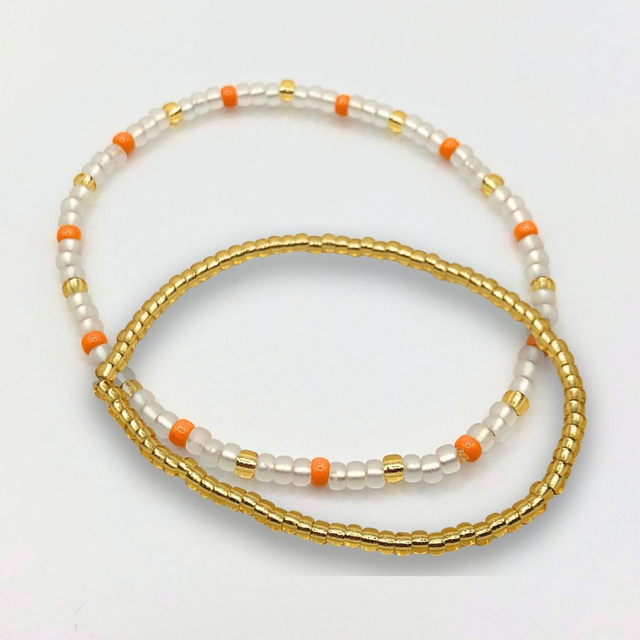 Deze set bestaat uit twee kralenarmbandjes, zoals getoond op de foto’s. De armbandjes hebben een lengte van ongeveer 18cm.